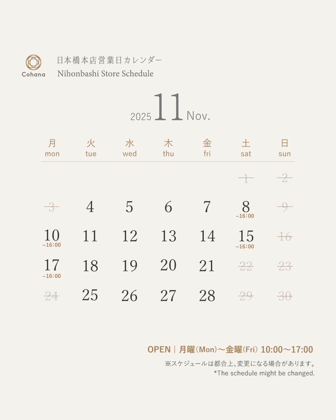 下記日程で催事を開催予定/実施中です。ご来店をお待ちしております。 ※スケジュールは変更になる場合がございますので、直接店舗様へお問い合わせください。