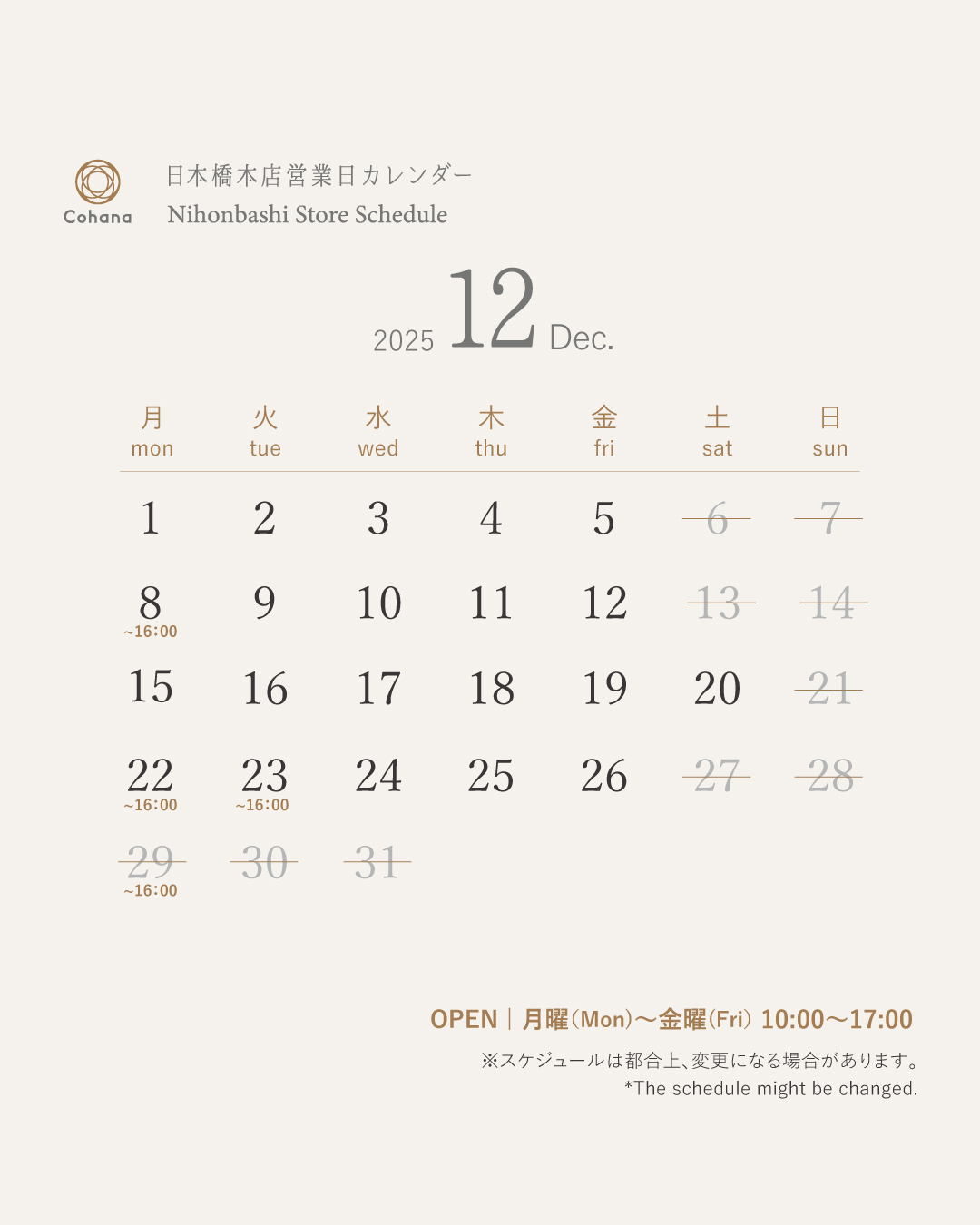 変更となる場合は、SNSやこちらのサイトでお知らせいたしますので、ご確認の上ご来店いただけると幸いです。